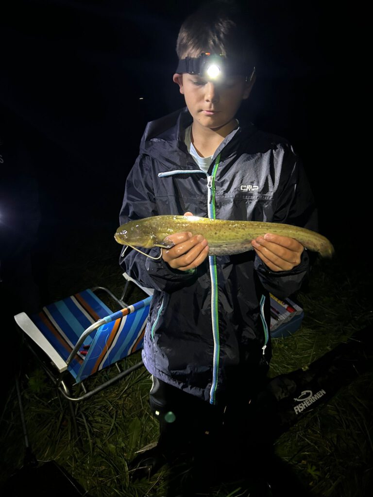 Geangelt wurde von 18:00 bis 23:00Uhr, dabei landete eine Barbe, ein kleiner Wels und ein Kaulbarsch im Kescher. Der Zielfisch Aal blieb leider aus.